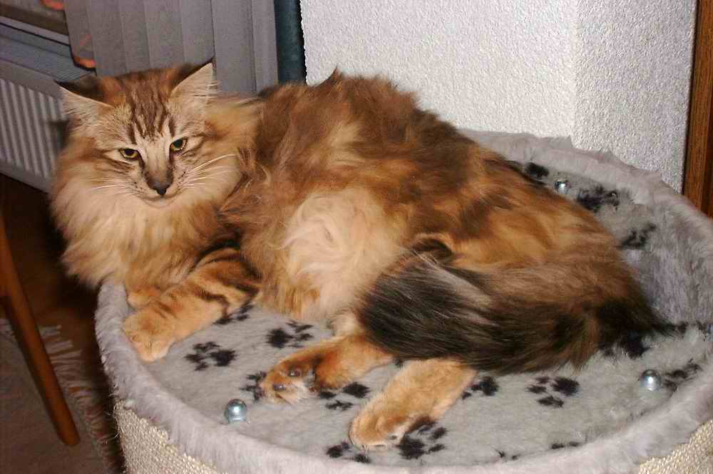 According to the previous NFO-race-standard the colours 'CINNAMON' and in dilution 'FAWN' as well as 'CHOCOLATE' and in dilution 'LILAC' were not admitted. Therefore often they were called X-colours. But these colours are always present in breeding NFO, as proved since 1992, when S* WILDWOOD's IMER and his brother IROS were born in this colours. And this colours will still exist in future, even if they are very rare. In former times often they might be disappeared as very warm black-tabby cats as pets.