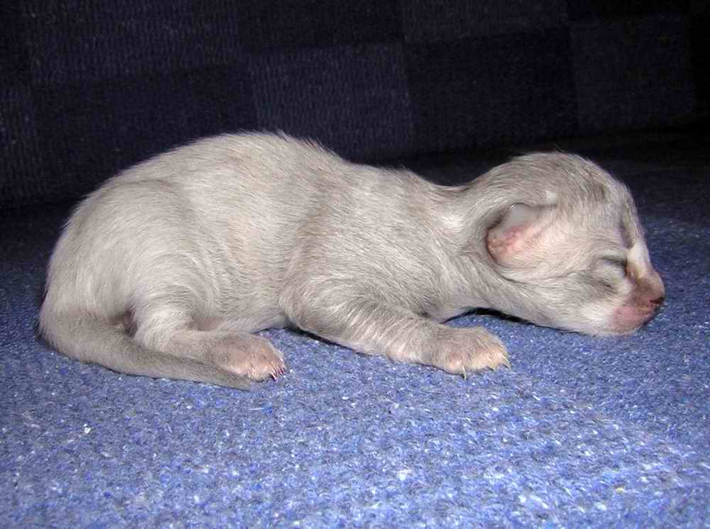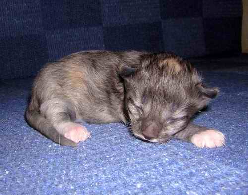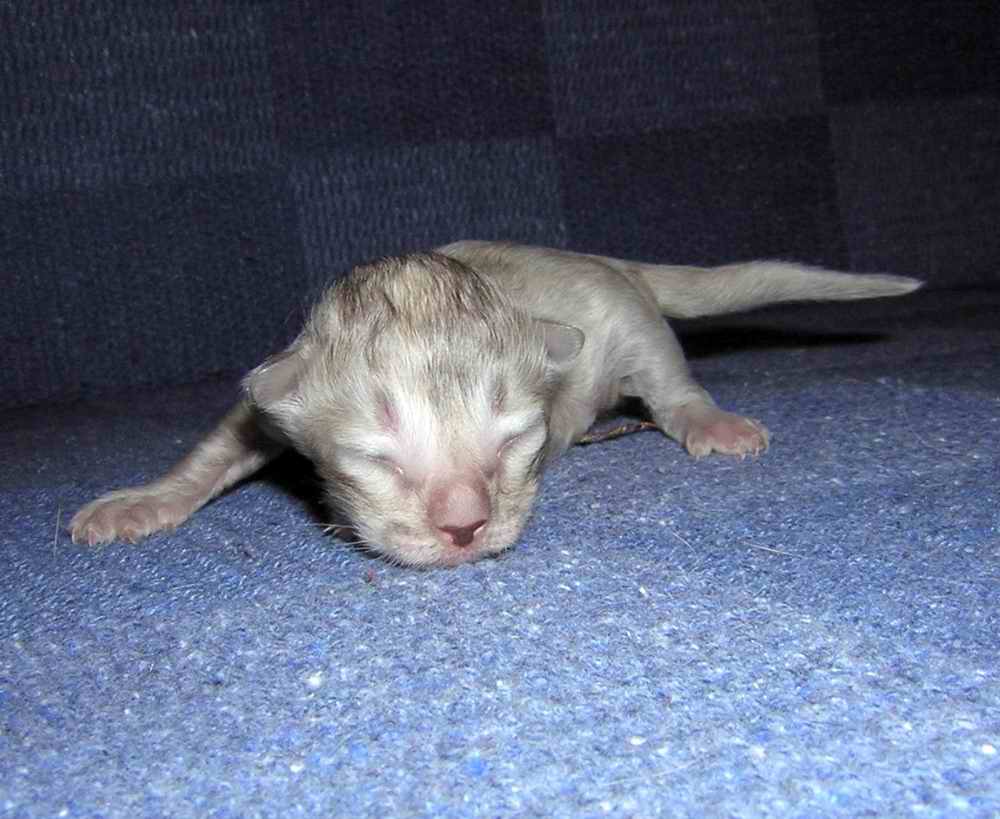 Dear catfriends, as well as the little eyes were finished first after 7 or 10 days and did open, as well is the development of the lungs finished first after 2 to 3 weeks after birth. We must accept, that death is an essential part of life. Our little prince SATISFACTION couldn't get the satisfaction of a full life of a stud. Very calmly he went over the rainbowbridge, unfortunately ! |