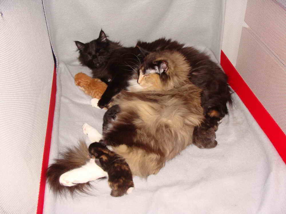 Mercedes / Ferrari & Corvette 7 months in our camper (at their first cat show) ;-) |