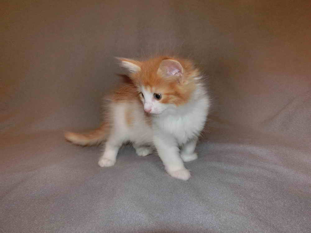 GEC Winnetou av BARNEDROEM ' Spocky ' 'pedigree' GSD VI-free and PKdef-free red-tabby-spotted/white |