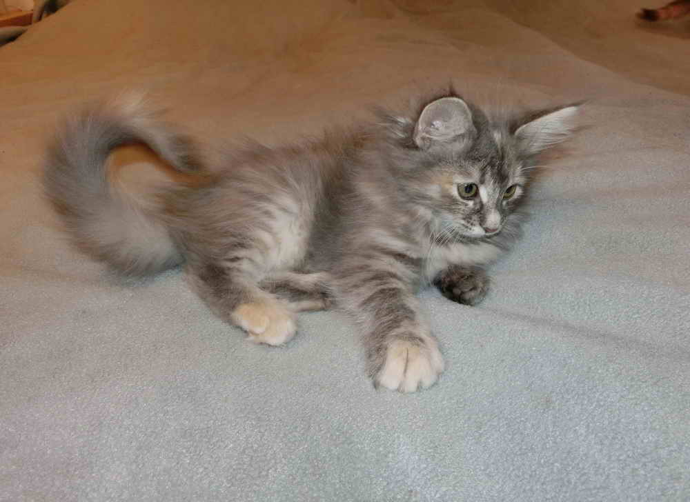 GIC Coco vom LINDWURMLAND ' Coco ' / ' Linchen ' 'pedigree' GSD VI - free and PKdef-free blue-tortie-tabby-blotched/white + amber-carrier |