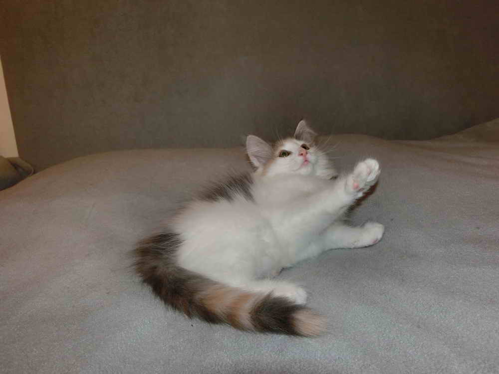 | COSMEA av BARNEDROEM blue-tortie/white-bicolor COSMEA (german/english/latin ) = KOSMEA = ( german=Schmuckkörbchen) = plant genus KOSMOS female |