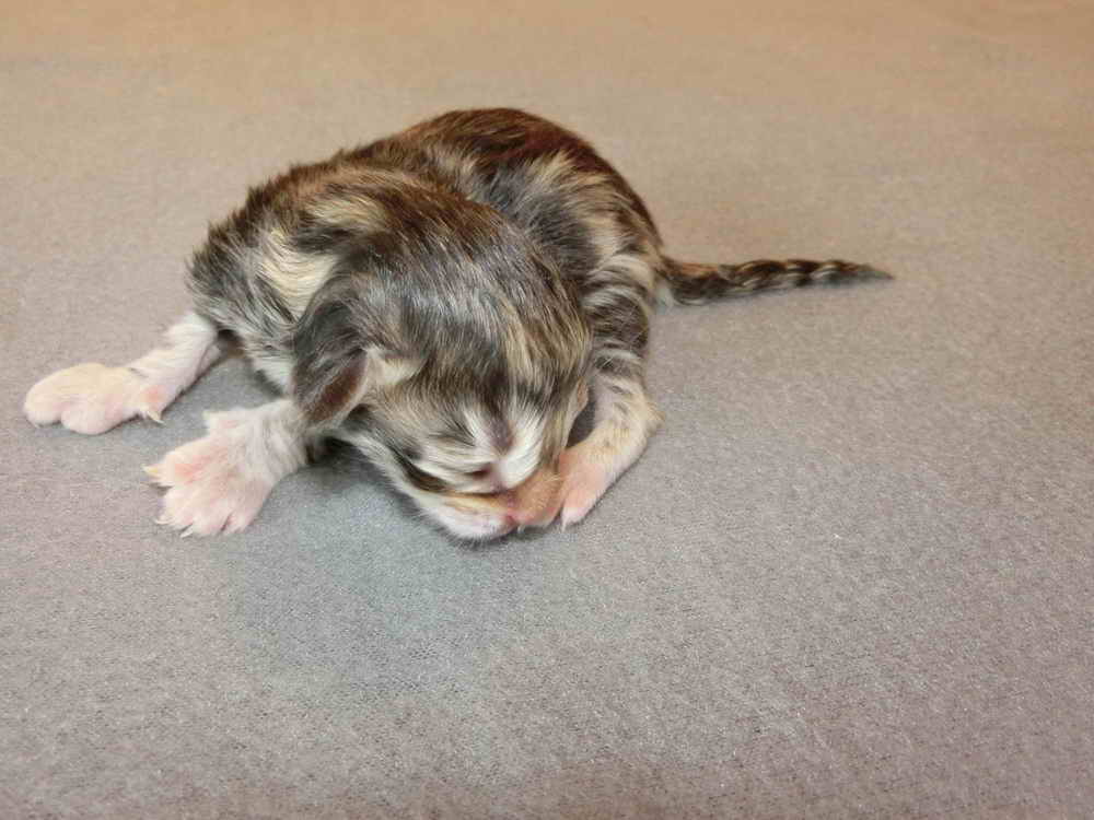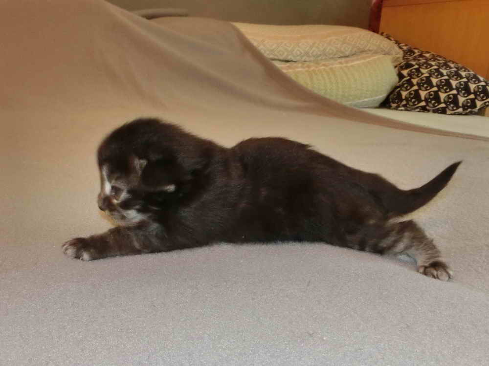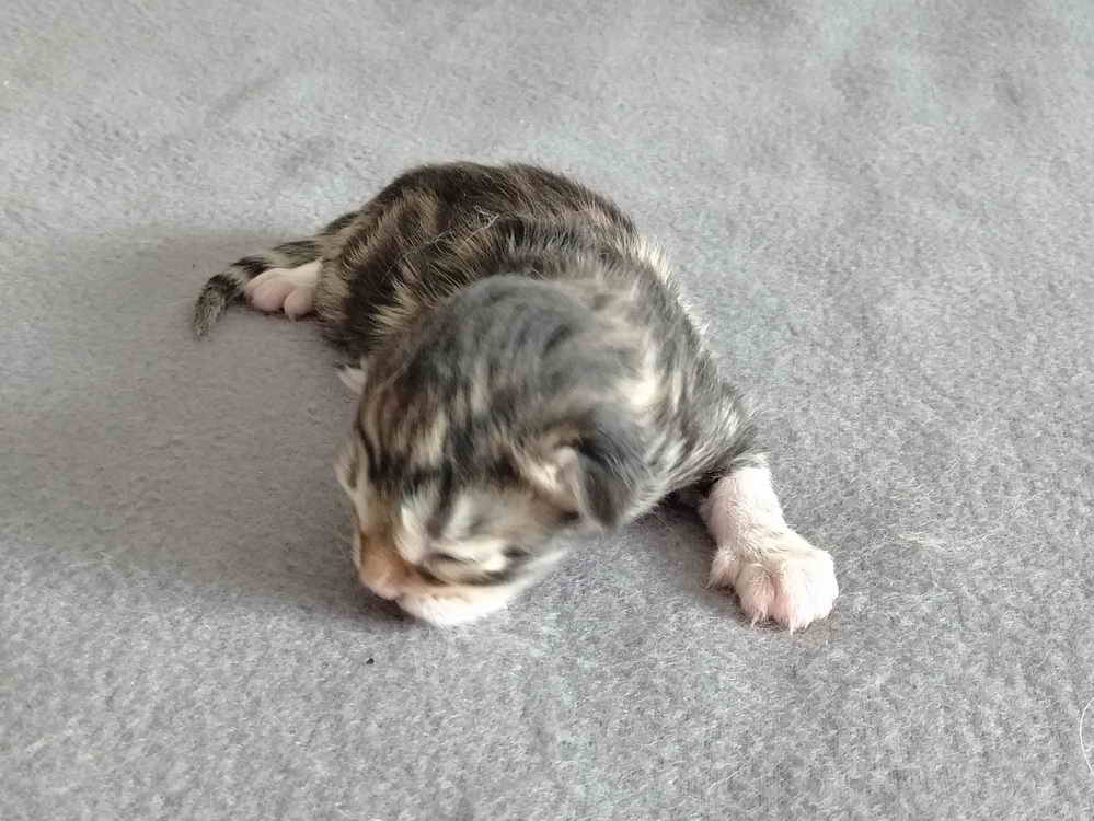 | EC RAVNKLO's Sirius *NO ' Susi ' 'pedigree' GSD VI - free and PKdef - free black-tabby-blotched/white amber-carrier |
