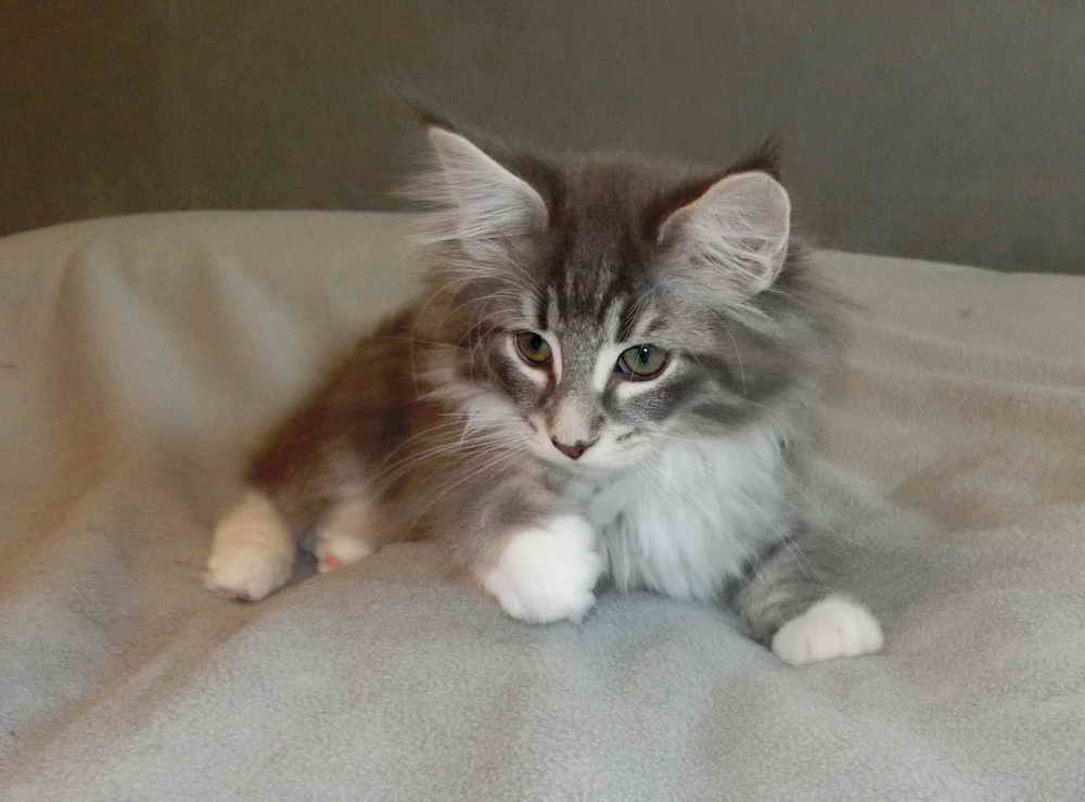 | HELLUIN av BARNEDROEM => nick name : 'Pfoti' [ little paw , cause of his white paws ] ;-) blue-tabby-mackerel/white male > HELLUIN < : in the language of the Sindar-elves, called Sindarin , 'HELLUIN' means 'Icy-blue' / 'Blue Star' which corresponds to the star SIRIUS [ his mother SUSI ;-) ] |